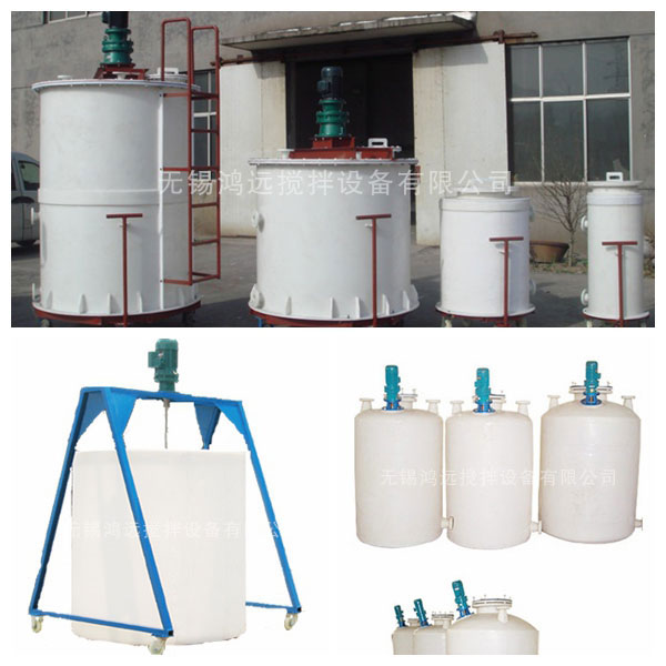 塑料搅拌罐以纯聚乙烯(线性低密度聚乙烯LDPE、高密度聚乙烯HDPE)为原料,采用特殊的滚塑工艺整体成型。具有无焊接、不渗漏、无毒性、重量轻、抗老化、抗冲击、耐腐蚀、寿命长等优点。一体成型整体性、耐腐蚀、长寿命优点尤为突出。塑料储罐能储存和反应绝大多数无机酸、碱、盐类溶液和大部分有机溶剂,能部分替代不锈钢钛、镍、高级合金钢等材料,全塑搅拌桶产品符合危险品储运条例,是储存反应化工腐蚀溶液、洁净溶液合适储存容器。